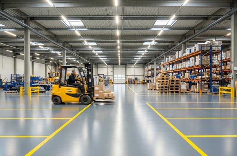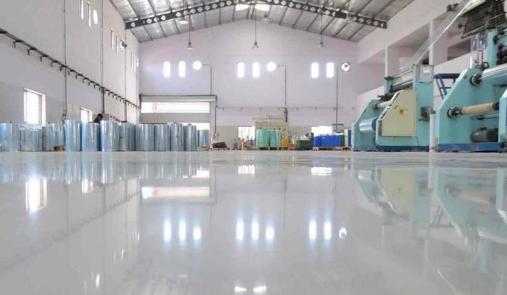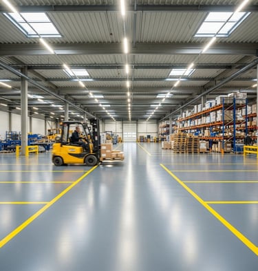 Solusi lantai epoxy untuk area industri, gudang, dan pabrik dengan hasil kuat, tahan lama, serta mampu menahan beban berat dan aktivitas tinggi