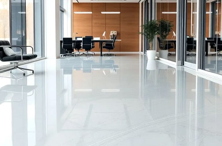 Lantai epoxy cocok diaplikasikan pada area publik seperti kantor, minimarket, dan kafe, memberikan tampilan interior yang lebih rapi, modern, dan profesional